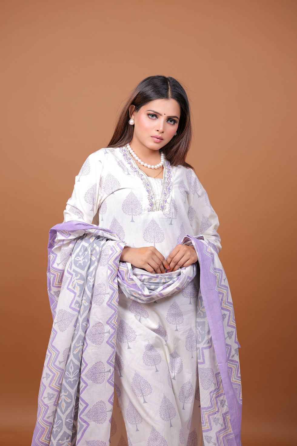 D.No-3002 - Cotton Kurti Pant Set with Dupatta
